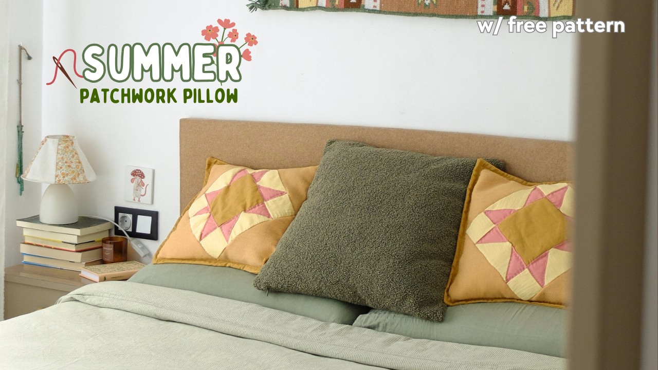 Hi there! Iβm Estel, and today Iβm sharing a tutorial for the patchwork pillow I showed in on of my videos β part of my DIY Bedroom Makeover series, where I explored sewing, upcycling, and a few colorful surprises.